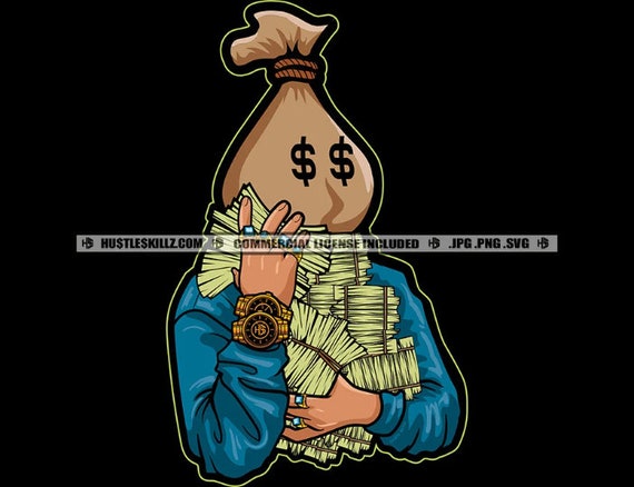 Money Bank Bag Head White Man Money Dollar Bills Two Watches Etsy