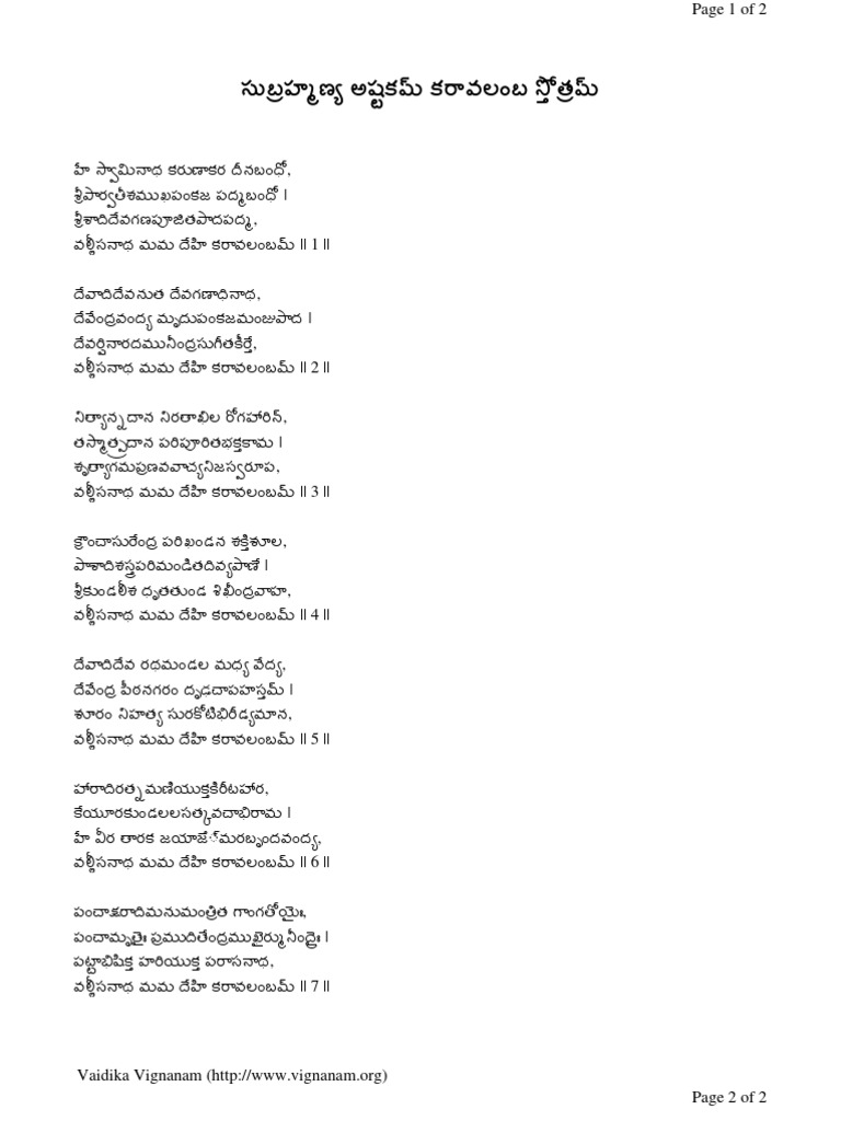 Subrahmanya Ashtakam Karavalamba Stotram Telugu Pdf Hypertext Web Technology