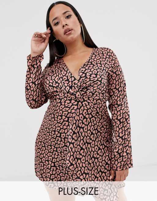 Club L Plus Langarmliges Kleid Mit Verdrehtem Design Und Tierfellmuster Asos