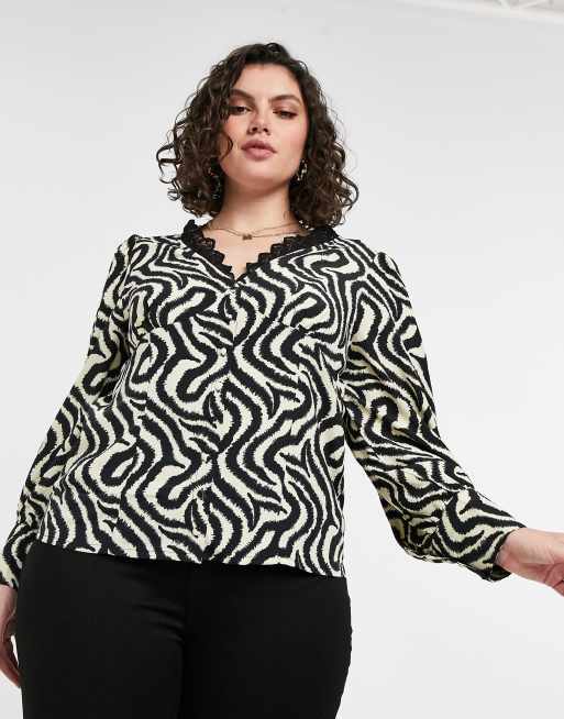 Glamorous Curve Kurze Vintage Bluse Mit Spitzenkragen Und Abstrakten Streifen Asos